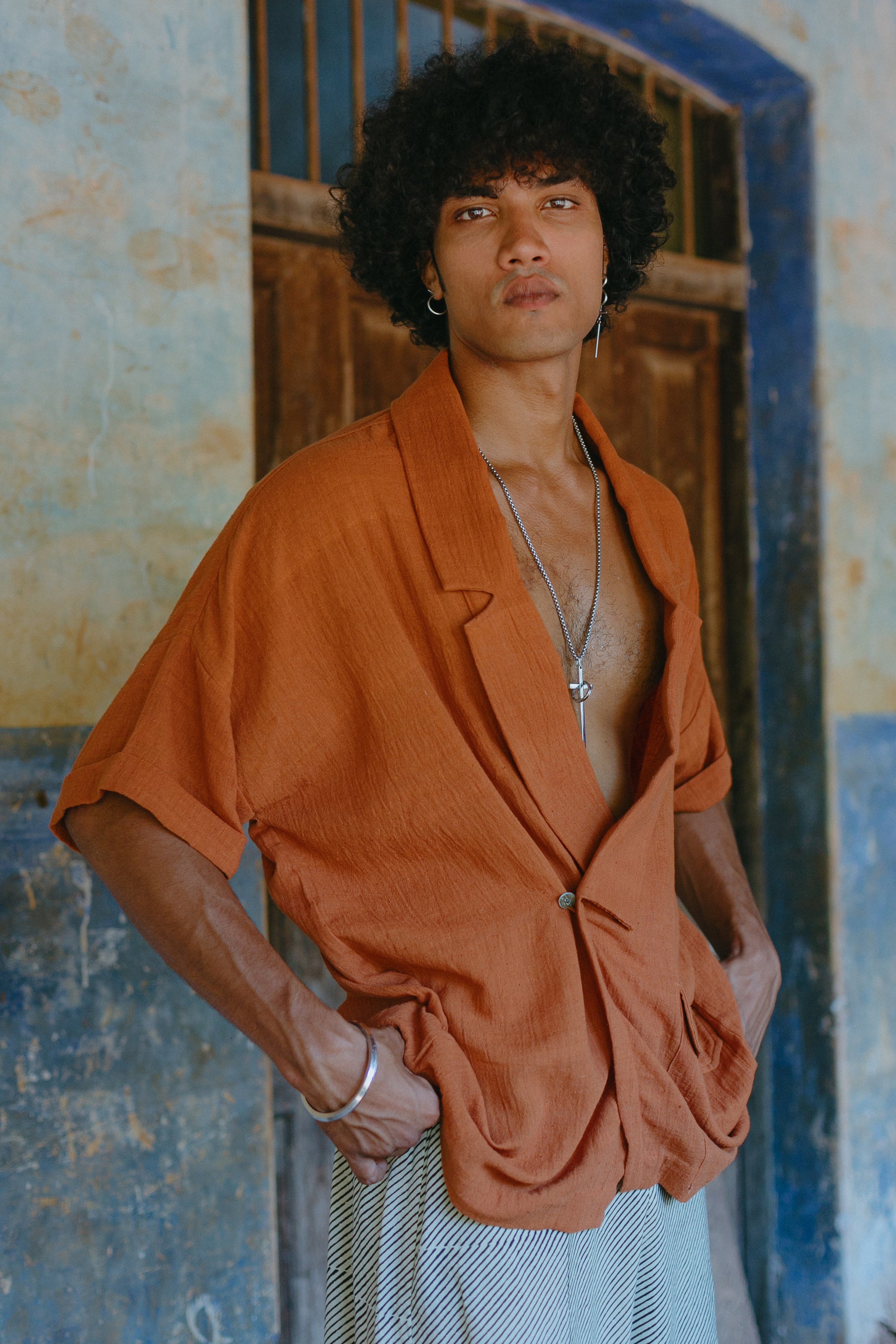 Embrace sustainable fashion with our unisex — Kala Cotton Noragi Jacket; our twist on a Japanese workwear silhouette. It is the perfect addition to your conscious summer wardrobe. Offered in one universal size in naturally dyed Orange, Black and Blue.