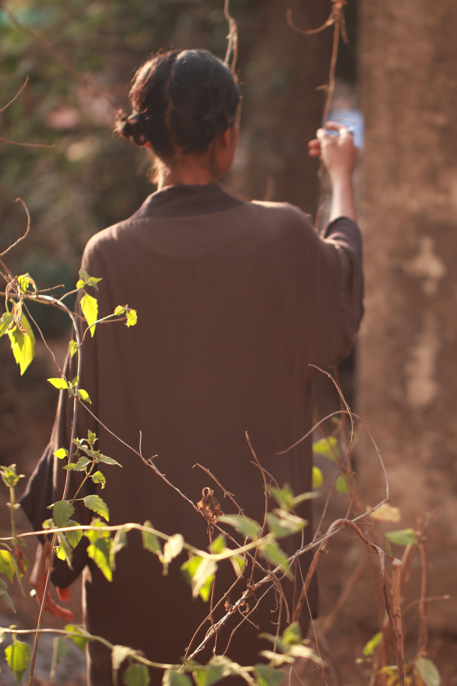 This Kimono is made from a herbal dyed, extremely soft cotton fabric. It features an upcycled border panel crafted with a patchwork of handloom fabrics. It has a comfortable loose-fit and makes a chic accent to any simple outfit.