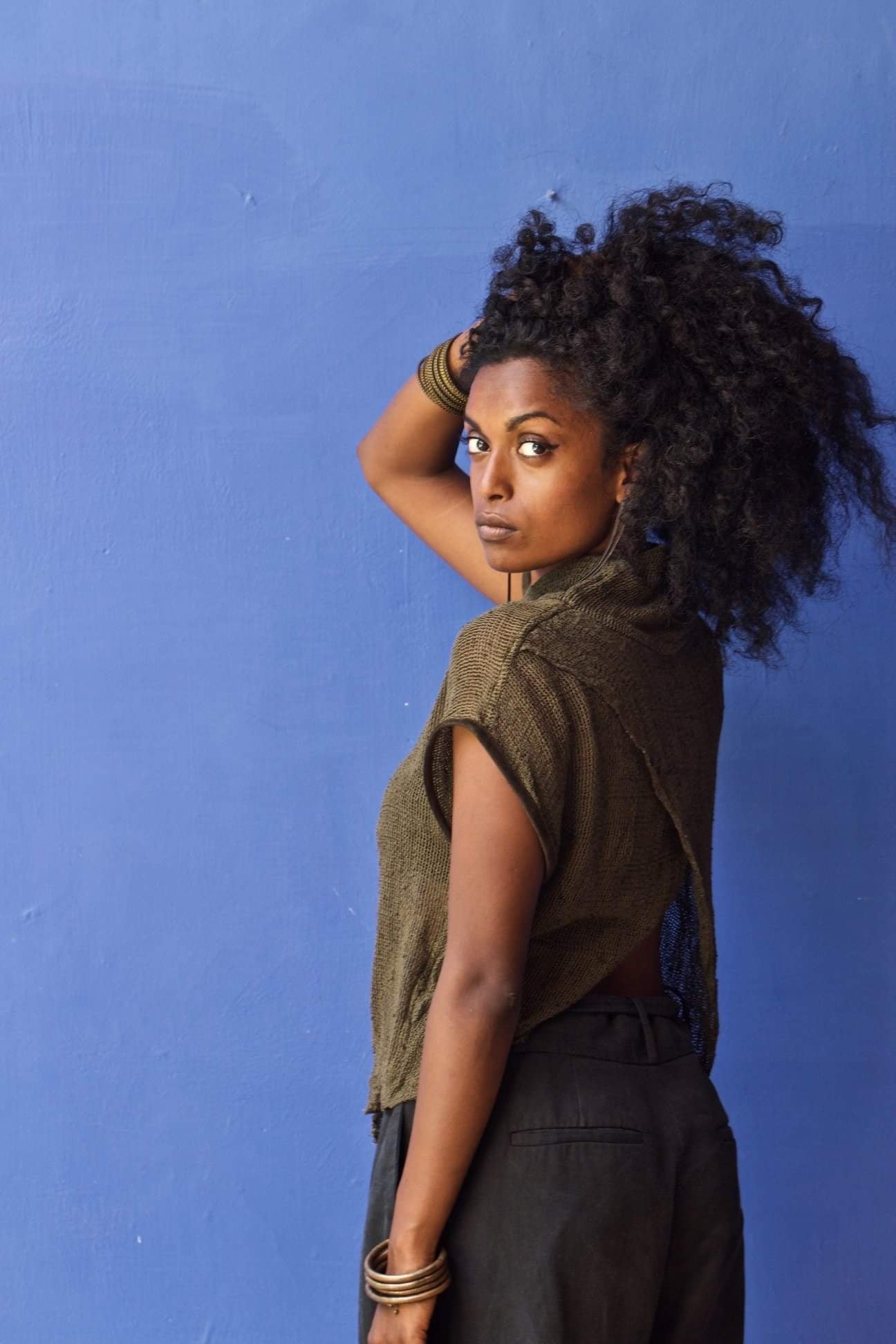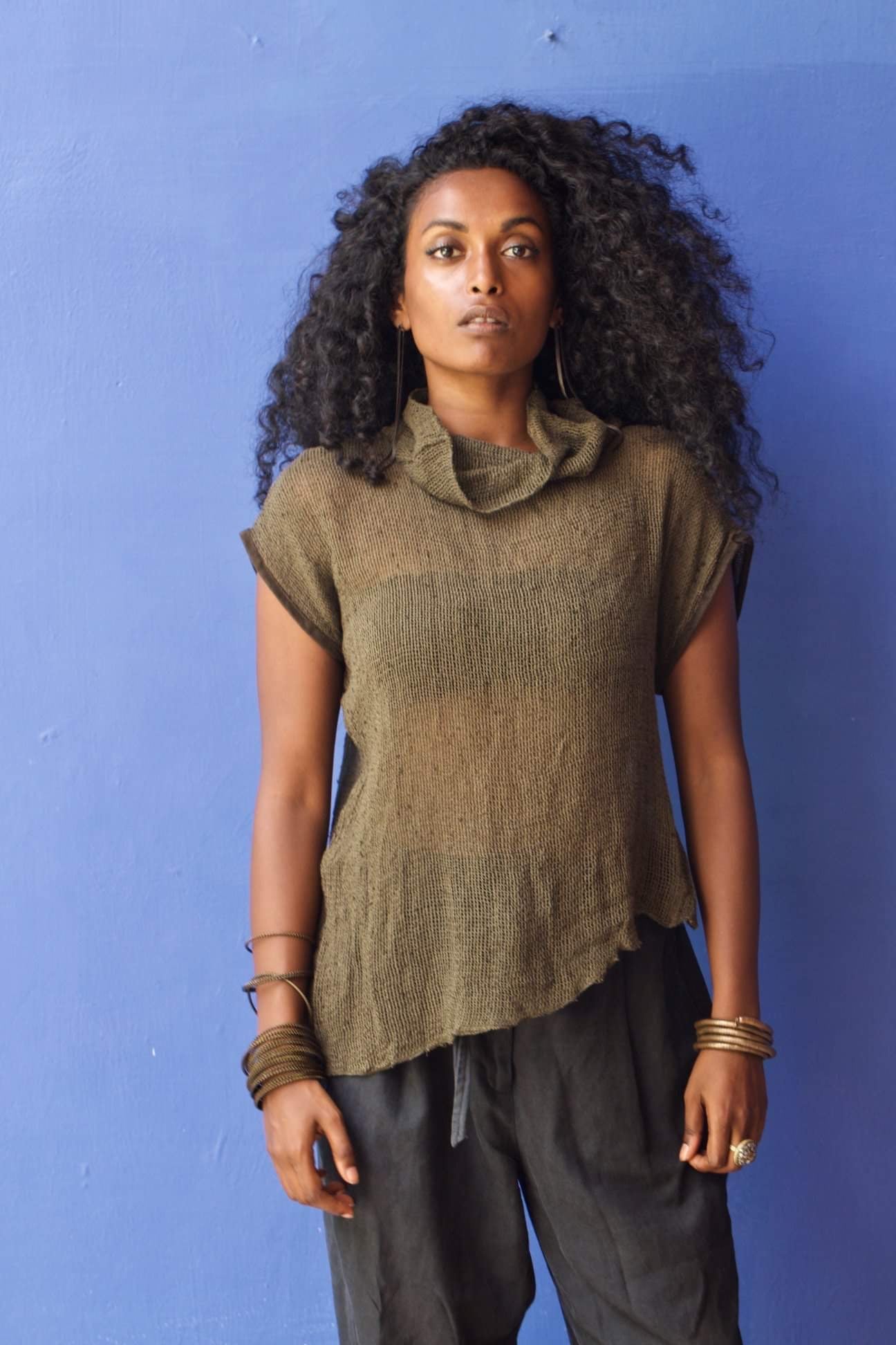 This super comfortable top is made of a lightweight cotton woven mesh. It features overlapping panels that can be worn either way, front or back. It can also be styled as a layer. Also available in Khaki and Black.